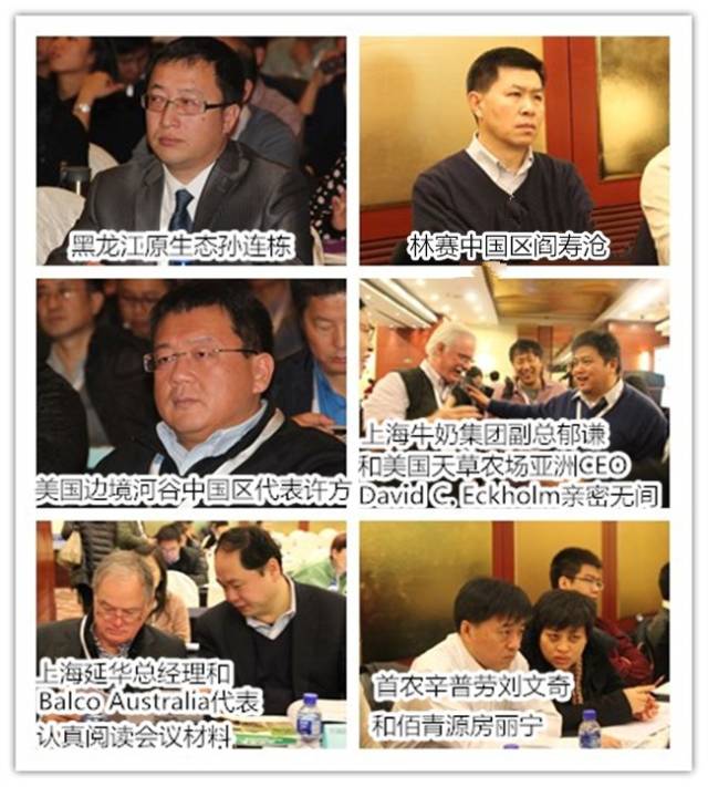 来自于首农畜牧、嘉立荷、现代牧业、上海牛奶集团、上海光明荷斯坦、黑龙江原生态、华夏畜牧、内蒙古奶联社、伊利牧业、富源牧业、辉山牧业、新希望、长富牧业、风行牧业、深圳晨光、东营澳亚、山东大地乳业、天宁牧业等规模牧场的采购相关负责人,国外牧草生产商HayDay、ACX、Border Valley、Anderson、Hay Kingdom、Bailey、Escalante、Knight、Balco Australia、Hay Australia等,以及国内牧草生产商秋实草业、甘肃亚盛田园牧歌草业、首农辛普劳草业、北京绿田园、内蒙古蒙草、惠农草业、达晨股份、宁夏贺兰山茂盛草业、甘肃酒泉厚德瑞、甘肃现代草业、内蒙古黄羊洼草业等参加了会议。